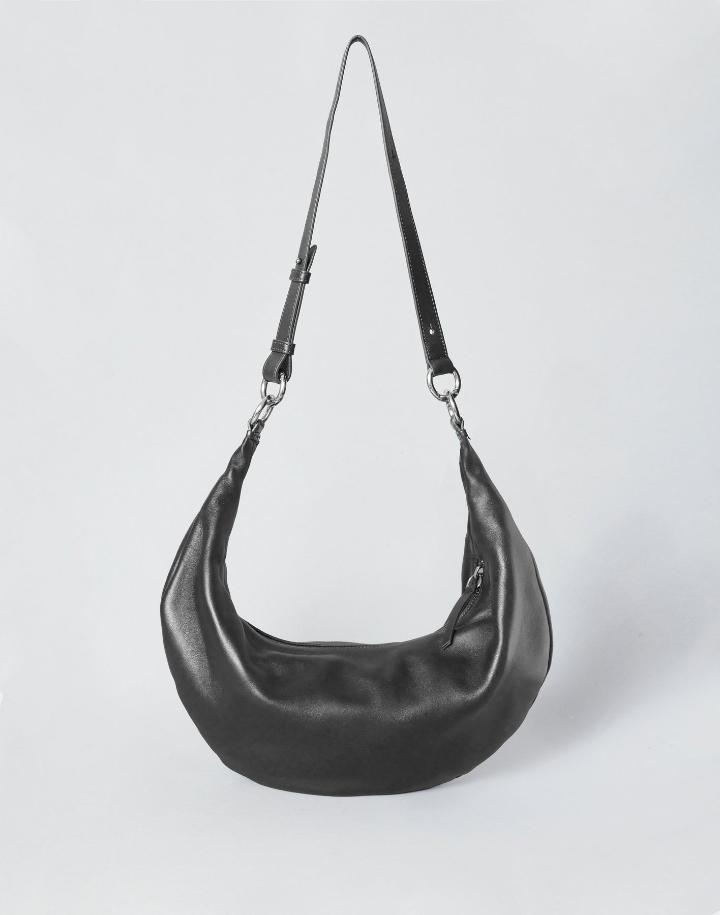 hyer goods ring bag convertible leather hobo bag#color_black-silver
