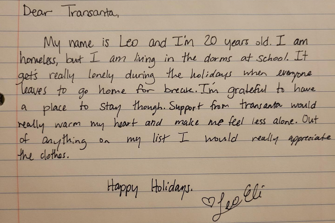 Trans youth disproportionately experience houselessness, are in foster care, detention, or in abusive or otherwise unsafe housing situations. @transanta exists to show young trans people that they are loved and supported by helping deliver gifts to Trans Youth in need.